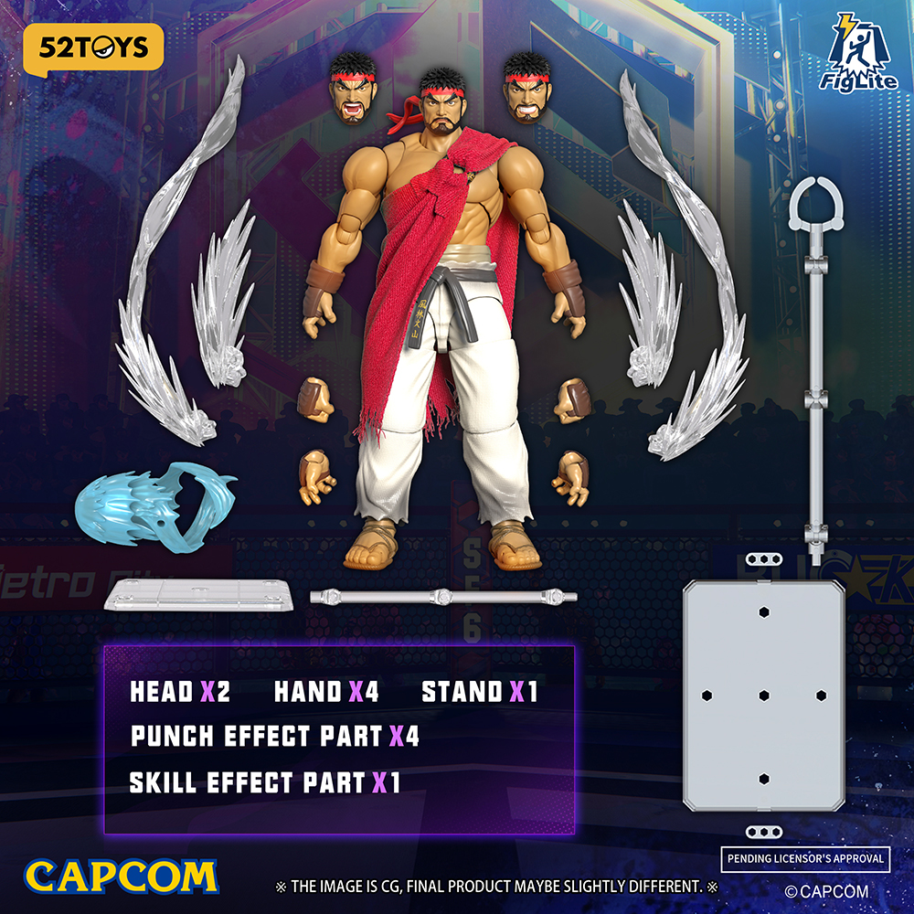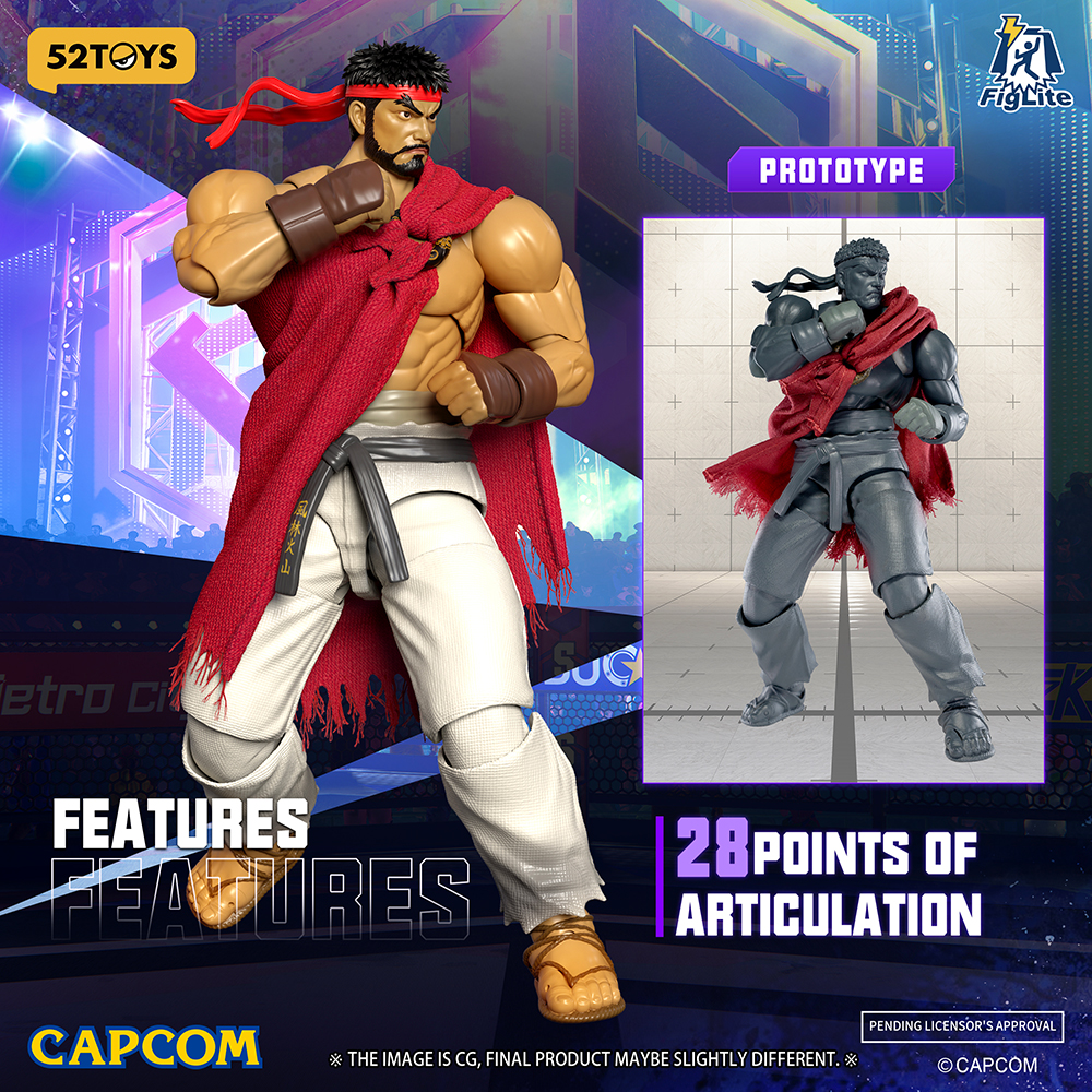 Der 52Toys Figlite Ryu ist etwa 15 cm hoch und verfügt über mehrere Gelenkpunkte (insgesamt 26) sowie spielgenaue Details. Kombinieren Sie ihn mit dem kommenden Chun Li Figlite für eine Runde 1 Ausstellung für die Ewigkeit!