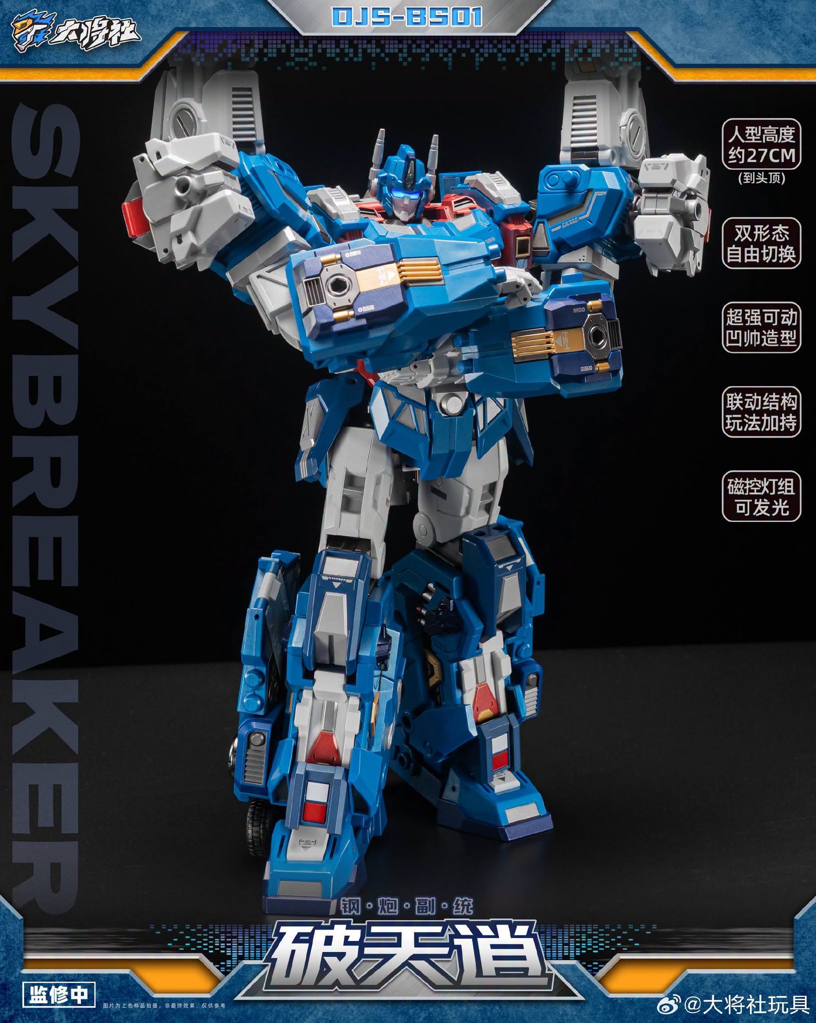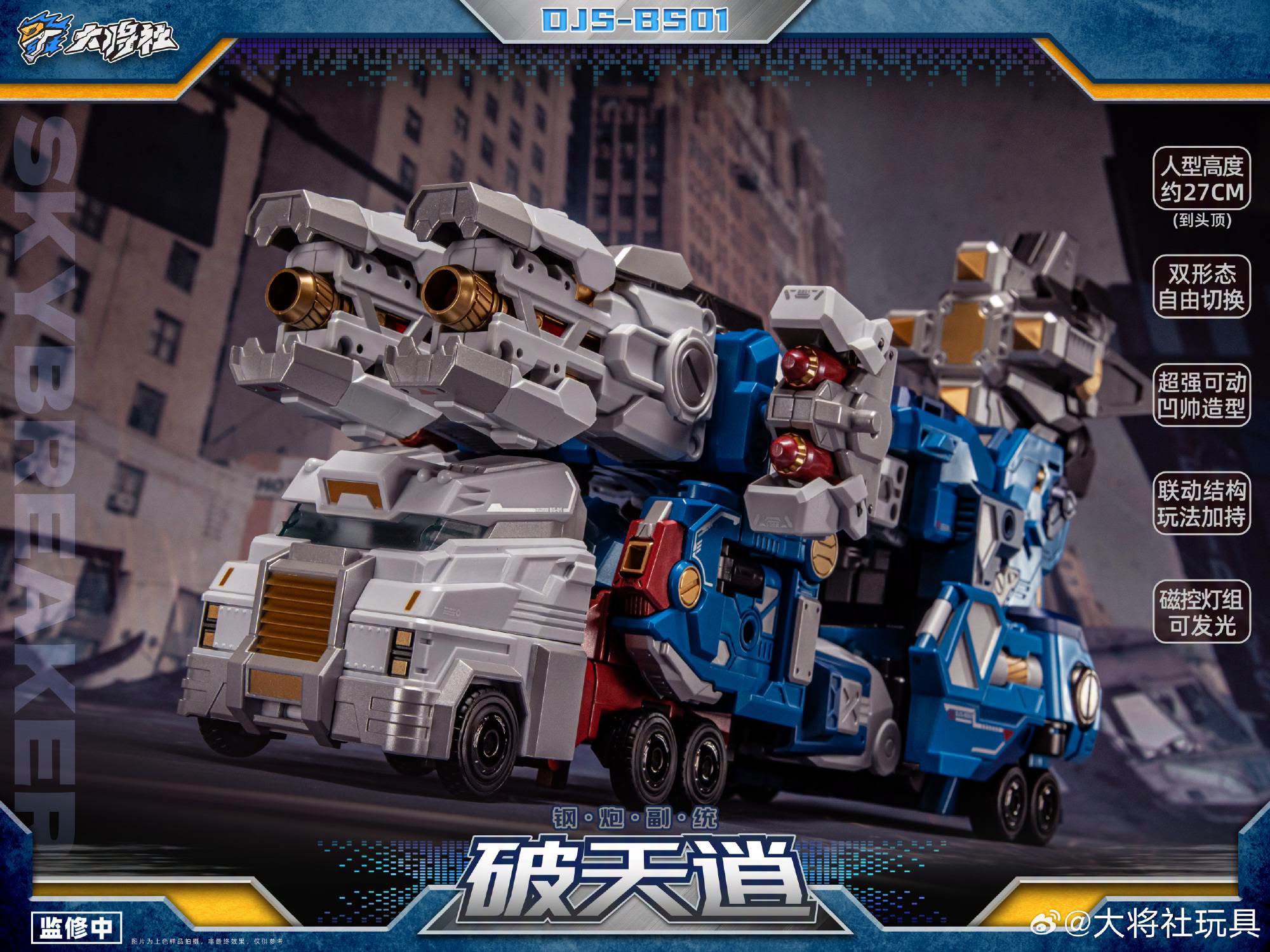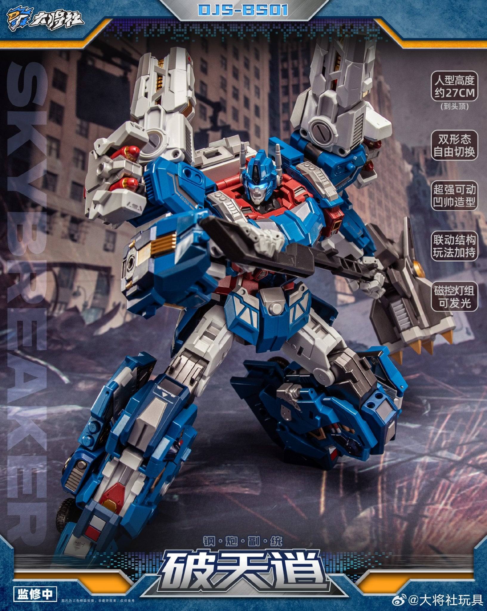 Der DJS-BS01 Skybreaker ist knapp unter 28 Zentimeter hoch und verwandelt sich vom City Commander in eine artikulierte und detailreiche Roboter-Actionfigur.