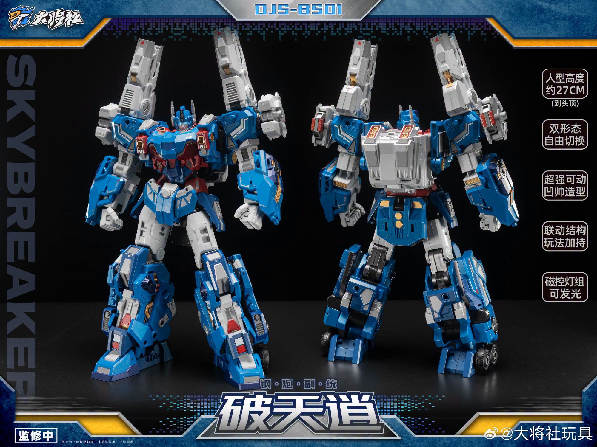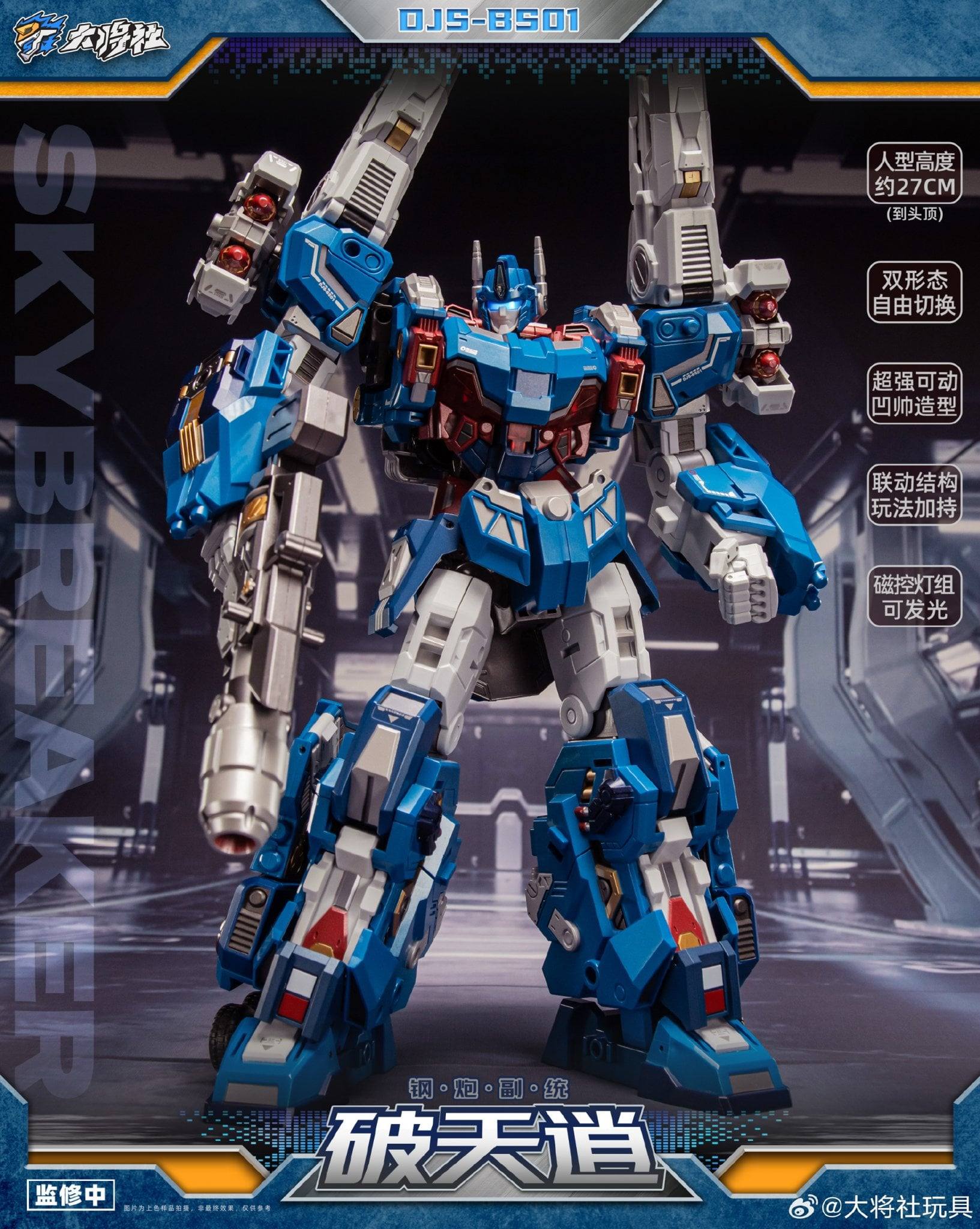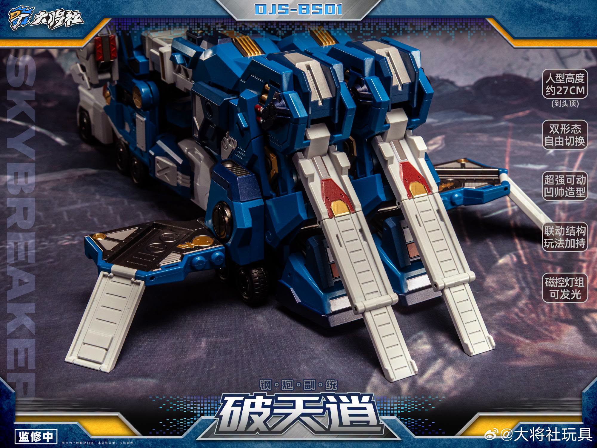 Der DJS-BS01 Skybreaker ist knapp unter 28 Zentimeter hoch und verwandelt sich vom City Commander in eine artikulierte und detailreiche Roboter-Actionfigur.