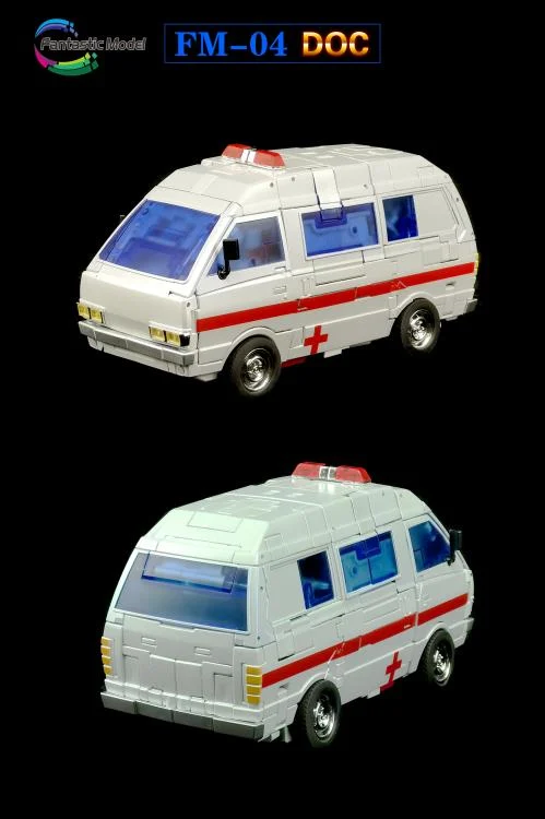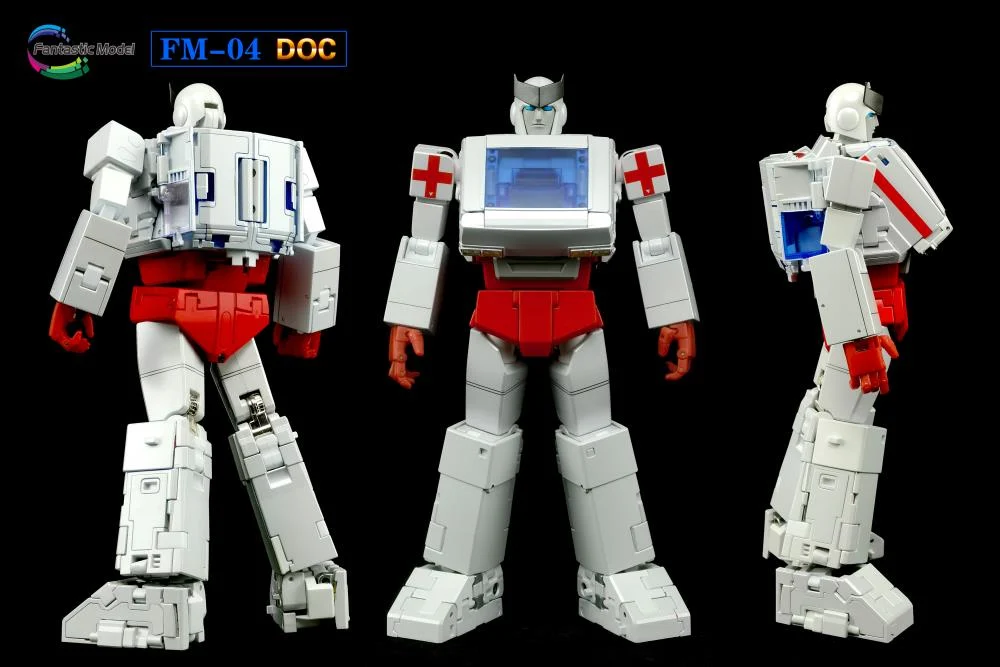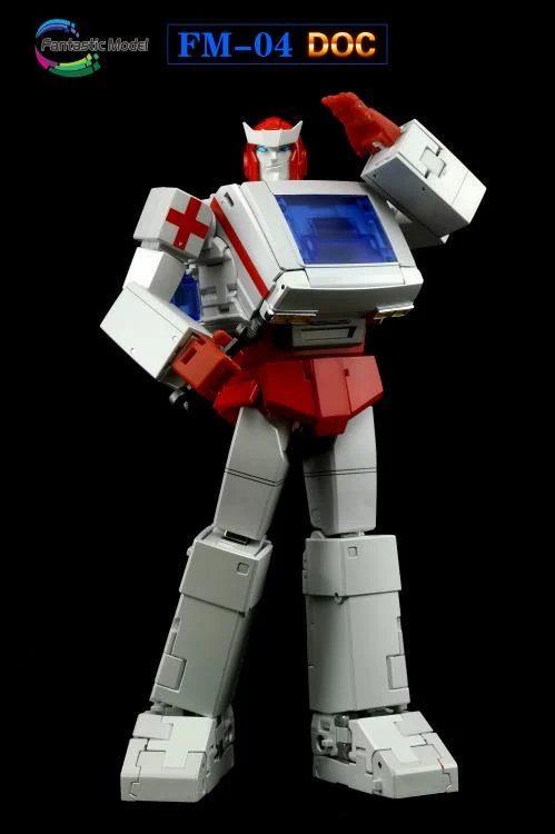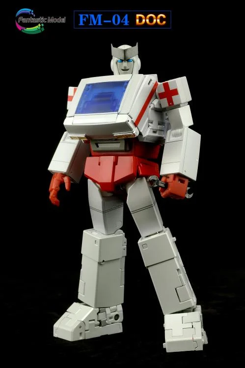 Fantastic Model Doc verwandelt sich vom Krankenwagen in eine vollständig artikulierte Roboter-Actionfigur und wieder zurück. Doc ist im Robotermodus etwa 23 cm groß und besteht aus Kunststoff und Druckguss.