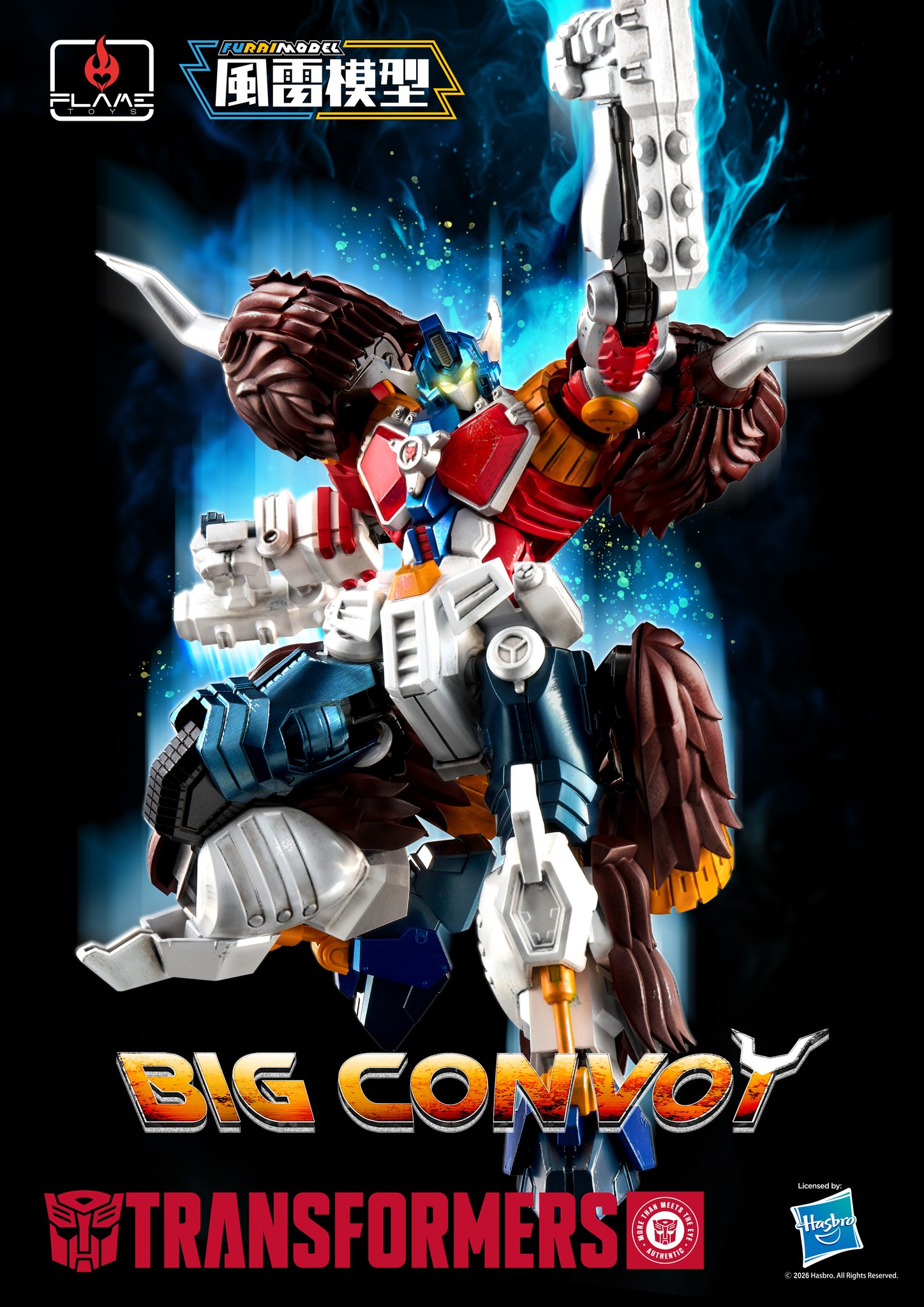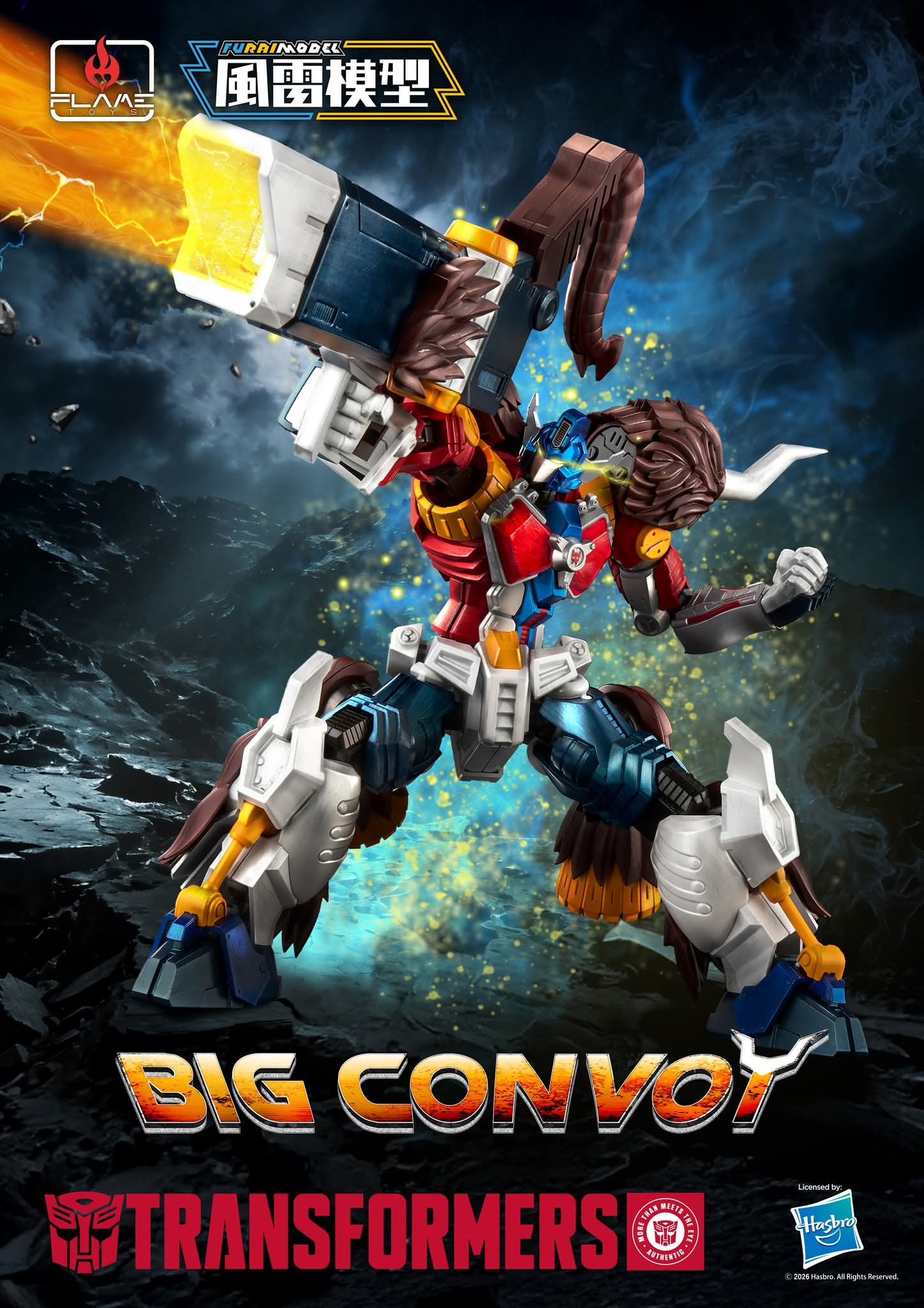 Flame Toys stellt das neueste Mitglied ihrer Transformers Furai Model Kit-Reihe vor…….. Großer Konvoi! Dieses Beast Wars Icon ist ein Snap-Kit und erfordert Selbstmontage. Nach der Fertigstellung kann Big Convoy als Actionfigur verwendet werden, die aufgrund ihrer dynamischen Gelenkmerkmale eine ganze Bandbreite von Posen einnehmen kann.