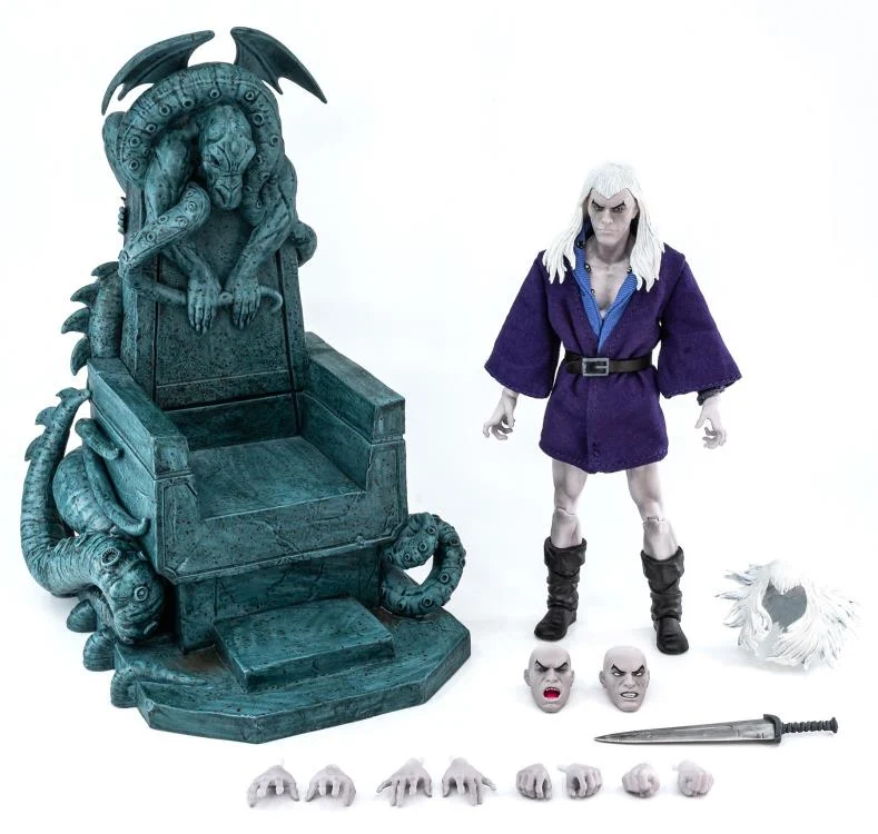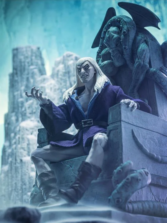 Aus dem Fantasy-Epos Fire and Ice von Ralph Bakshi und Frank Frazetta aus dem Jahr 1983 erscheint Nekron im Maßstab 1:12 und wird mit unglaublichen Skulpturdetails und voller Beweglichkeit zum Leben erweckt. Der skrupellose Herrscher von Eisgipfel kommt mit einem großen, vollständig geformten Thron mit abgestuften Stufen und einem geschnitzten Tiermotiv daher, ein imposantes Ausstellungsstück, das der gefrorenen Festung, die er kontrolliert, würdig ist.