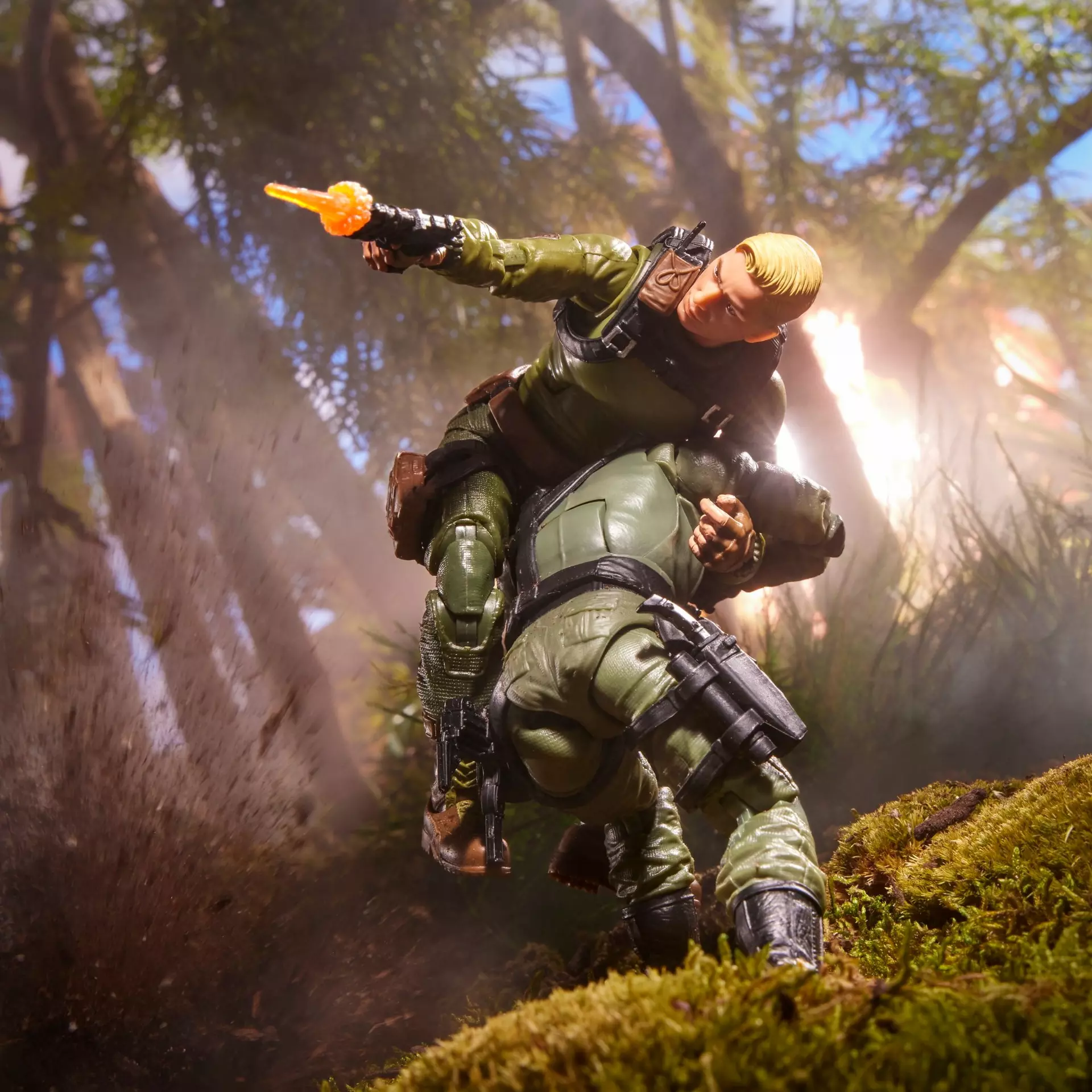 Die tapferen Mitglieder von G.I. Joe sind bereit, Cobra in jeder Umgebung auf dem Planeten zu suchen. Von lebensfeindlichen Dschungeln bis hin zu eisbedeckten arktischen Gipfeln… Wo immer es Ärger gibt, ist G.I. Joe zur Stelle. Neu in der G.I. Joe Classified Series ist der Ralph „Steeler“ Pulaski & Short-Fuze, der mit mehreren Gelenkpunkten für eine hohe Beweglichkeit ausgestattet ist. Dieses Ralph „Steeler“ Pulaski & Kurzzünder-Figurenset ist vollgepackt mit 29 von Charakteren inspirierten Zubehörteilen. Steeler wird mit Helm, Messer, 9 Explosionseffekten und Waffenzubehör geliefert. Der Kurzzünder wird mit Messer, Verschanzungswerkzeug, abnehmbarer Brille, Helm, Mörser mit Basis und Rakete, Rucksack und Waffenzubehör geliefert.