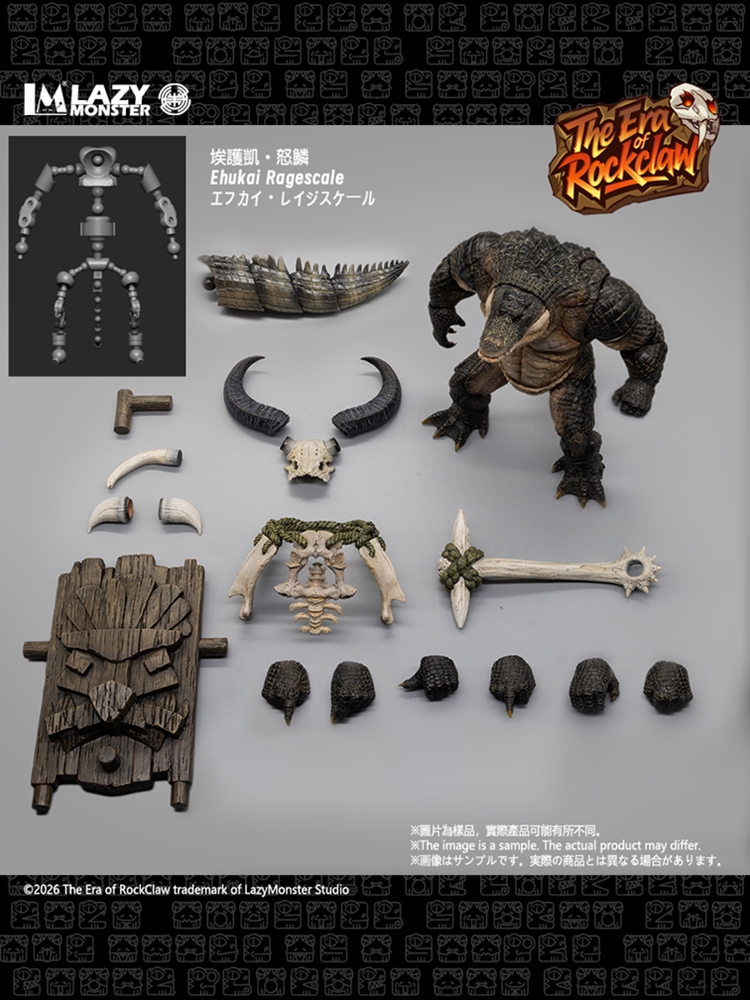 Die Rockclaw-Ära beginnt!! Mashfang, Ragescale und Bruteskull. Jede Figur ist etwa 22 cm / 8,6 Zoll hoch. und wird mit einem inneren Skelett, mehreren Artikulationspunkten und Zubehör geliefert.