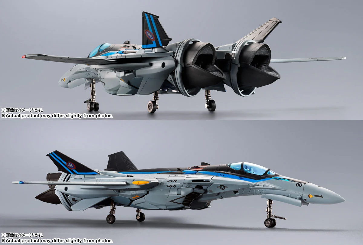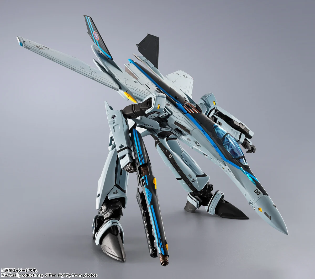 Im Robotermodus ist dieser spezielle Macross X Top Gun VF-25 etwa 23 cm groß und verfügt über das charakteristische Helmdesign von Pete “Maverick“ Mitchells und die Farben des Jets. Der VF-25 wechselte vom Battroid zum Jäger und wieder zurück und besteht aus ABS, PVC und Druckguss.