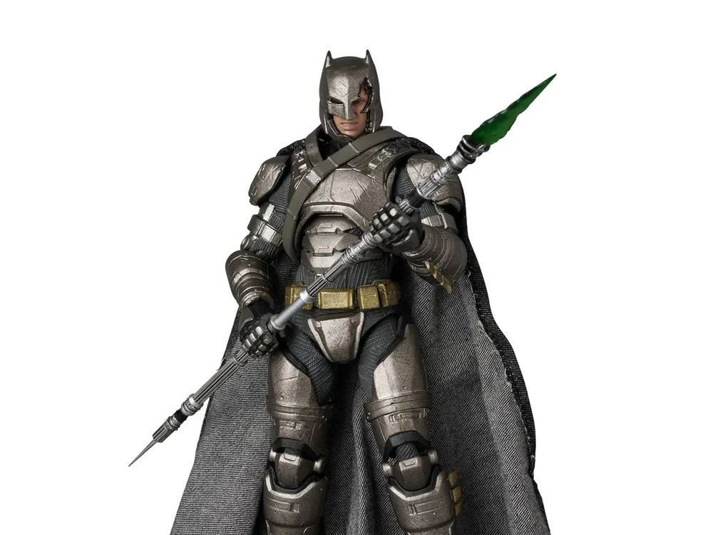 Wer wird nach dem Kampf zwischen dem Dunklen Ritter und dem Mann aus Stahl allein dastehen? Medicom Toy ist stolz darauf, mit dem gepanzerten Batman einen neuen Beitrag in der beliebten MAFEX-Reihe hervorzubringen! Basierend auf seinem Auftritt im Erfolgsfilm Batman v Superman: Dawn of Justice hat Batman eine neue Rüstung über seinen Batsuit gelegt, um gegen den nahezu unaufhaltsamen Superman in einem für die Ewigkeit gewachsenen Kampf zu kämpfen. Entworfen mit MAFEX‘ dynamischer Beweglichkeit und voller kreativer Details ist diese Actionfigur mit Batmans charakteristischer Greifpistole und seinem Kyrptonit-Speer ausgestattet, der das Showdown zu einem atemberaubenden Abschluss bringen wird! Zeit, deine Seite zu wählen und deine Figur noch heute zu bestellen!
