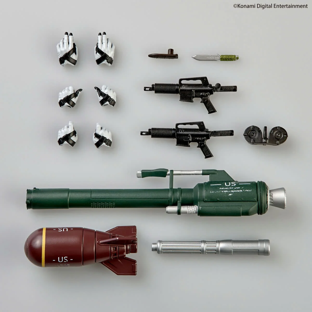 Der sowjetisch hergestellte Schleichanzug hat metallische Farbe, um die Textur des Spiels nachzubilden. Die einzigartige Ganzkörperbeweglichkeit ermöglicht realistische Posen, einschließlich Nahkampf (CQC) und realistischer Haltungen beim Umgang mit Schusswaffen. Die streng blickende Figur hat sogar bewegliche Augen! Ihr charakteristisches Sturmgewehr, das zu einer Pistole mit verkürztem Lauf umgebaut wurde, kann mit einem unbegrenzten Magazin ausgestattet werden. Ein Miniatur-Atomsprengkopf, ein Startgerät und ein Antriebsraketenmotor zum Abfeuern sind ebenfalls enthalten.