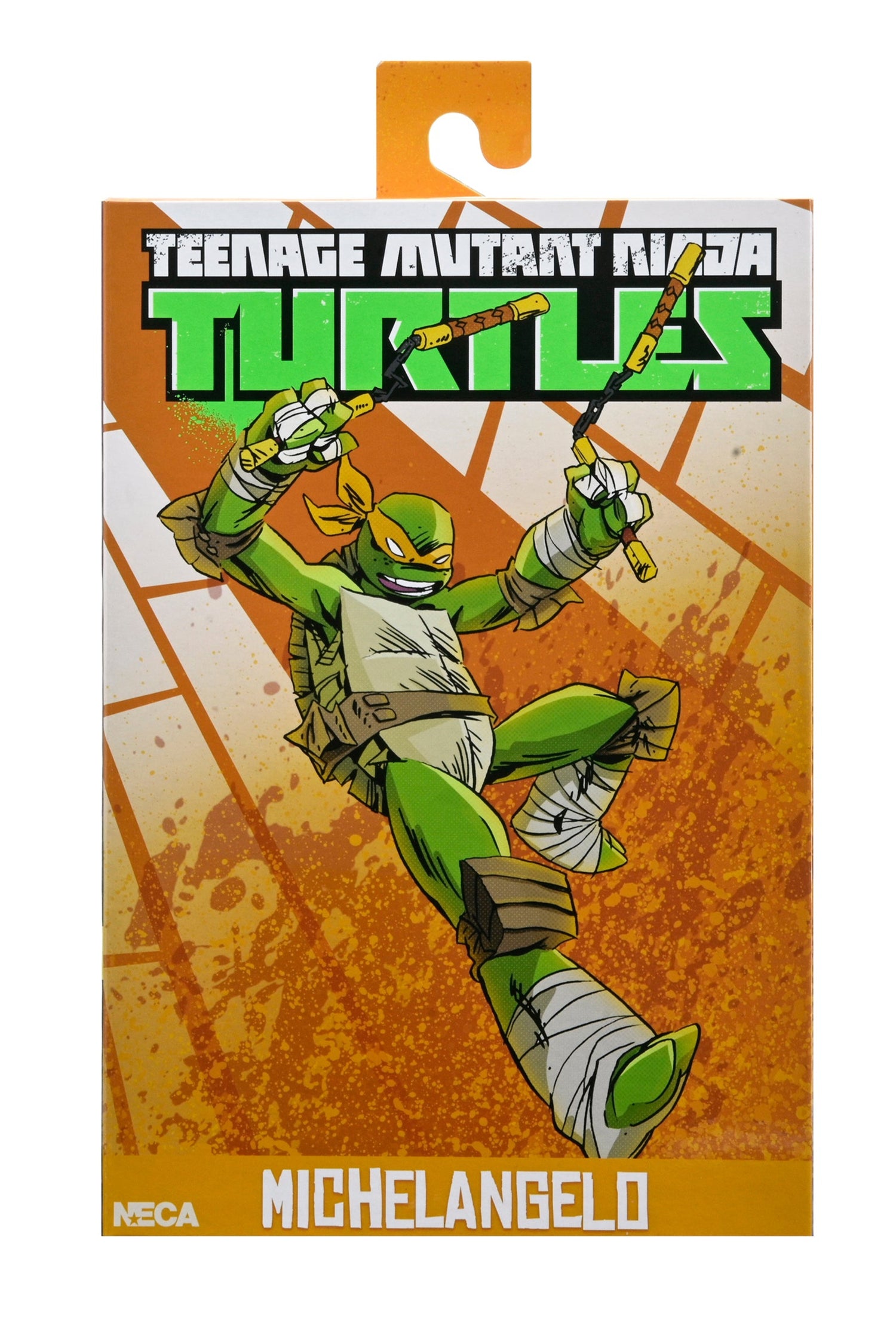Diese Figuren verfügen über beeindruckende bemalte Details, um das animierte Aussehen der Figuren nachzubilden, und enthalten austauschbare Köpfe und Hände sowie episodenspezifische Accessoires. Jede einzeln verpackte Figur wird in sammlerfreundlicher Verpackung mit Illustrationen des TMNT-Künstlers Ciro Nieli geliefert.