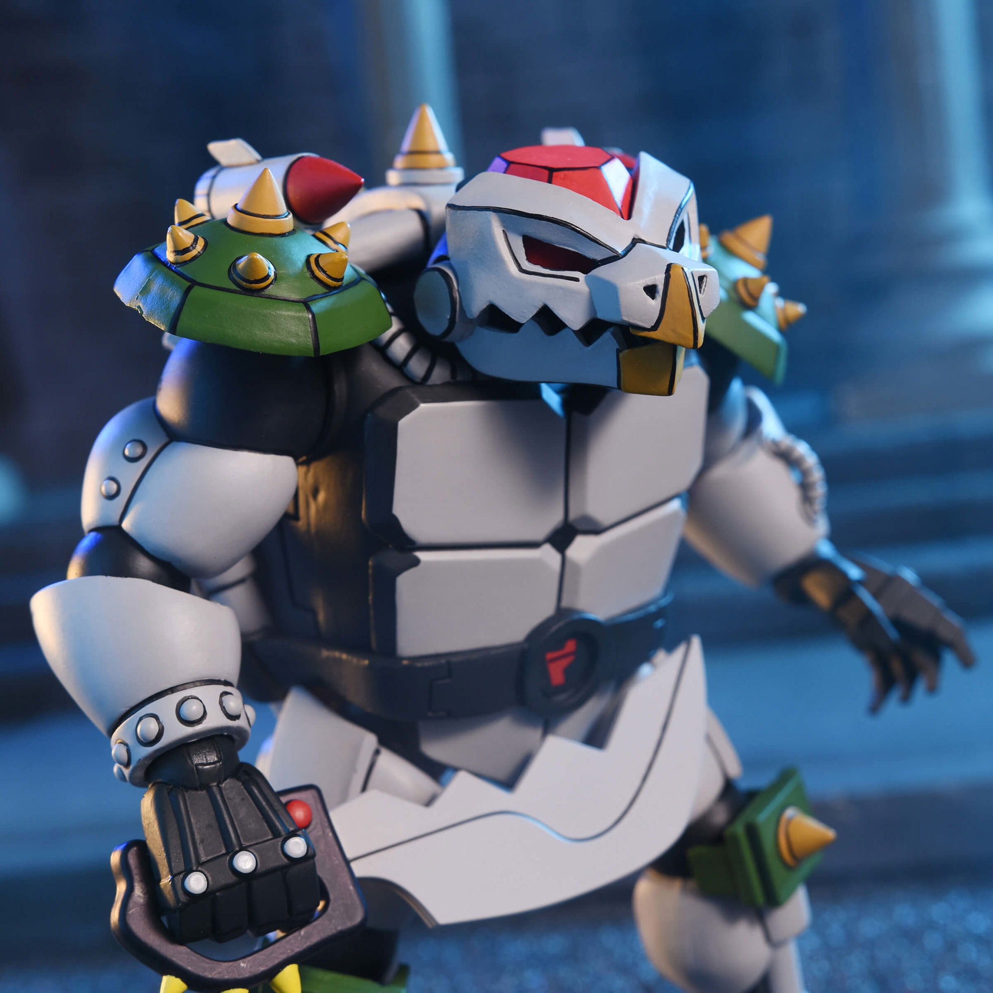 Inspiriert von der klassischen Teenage Mutant Ninja Turtles-Zeichentrickserie der 1980er Jahre! Sie sehen vielleicht so aus, als wären sie gerade aus dem Bildschirm getreten, aber das haben sie nicht! Diese „Was-wäre-wenn“-Charaktere wurden von SNZ Toys entworfen und sind großartige Ergänzungen für deine ohnehin schon riesige NECA TMNT-Cartoon-Sammlung. Diese 7-Zoll-Actionfiguren aus Robo Tokka und Rahzar verfügen über beklappbare Kiefer und verfügen über austauschbare Hände, Cybersaber, Mecha-Keulen, Mikrochip-Snack und eine gesunde Schüssel Müsli mit Schrauben! Präsentiert in sammlerfreundlicher Fensterschachtelverpackung.