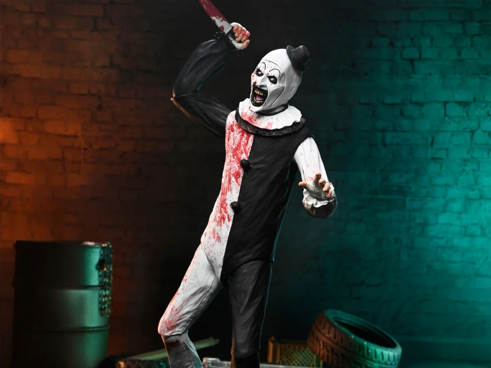 Aus Damien Leones Terrifier 2 präsentiert NECA Ihnen diese Ultimate Art the Clown-Actionfigur – eine furchterregende Hommage an eine moderne Horror-Ikone. In einer 7-Zoll-Skala steht dieser voll artikulierte Killerclown mit blutbespritztem Dekor, der im Blut seiner Opfer von seinem kleinen Hut bis zu seinen Clownsschuhen tropft. Diese Figur umfasst mehrere austauschbare Gesichtsplatten und Hände sowie eine Vielzahl blutiger Waffen zur Ergänzung der Sammlung. Der sadistische Slasher wird in sammlerfreundlichen Fensterschachtelverpackungen mit offener Frontklappe geliefert und zeigt Illustrationen von www.creepyduckdesign.com. Bring diese stille, tödliche Bedrohung nach Hause, um deine Regale zu durchstreifen!