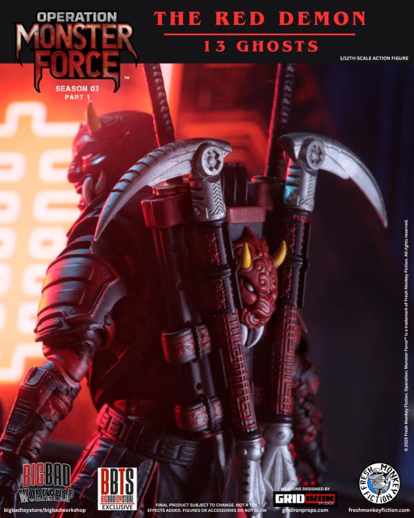 Jede Operation: Monster Force Actionfigur im Maßstab 1:12 verfügt über mehr als 20 Gelenkpunkte und enthält Zubehör wie: alternative Porträts, austauschbare Hände sowie einen Operation: Monster Force Grabsteinsockel zum einfachen Posieren und Ausstellen.