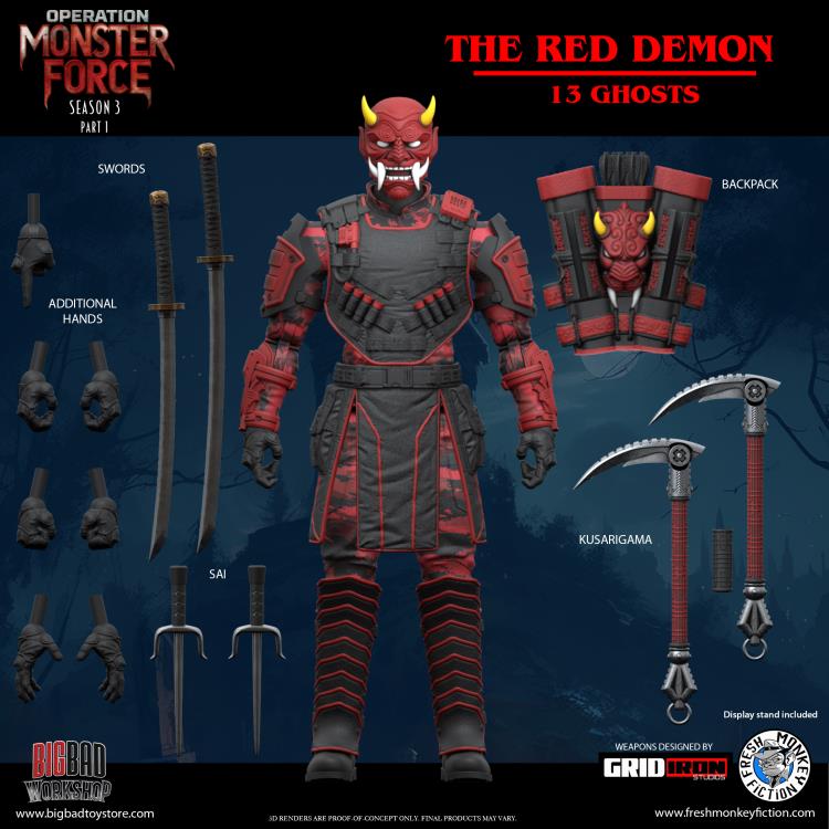 Als der vergessene König Himikos Grab in den Straßen von Tokio ausgrub, wurden auch einige der Gräber ihrer Wächter freigelegt. Die Maske, die als „Der rote Dämon“ bekannt ist, zwang einen Steuerberater, sie aus den Trümmern aufzuheben. Der Dämon nahm dann Besitz von Körper und Geist des Buchhalters, schnappte sich seine uralten Schwerter und griff die Apophis-Legion an. Als sich der vergessene König mit dem Sarkophag der Königin wegteleportierte, schloss sich der Dämon der Operation Monster Force an, um das Grab der Königin zurückzubringen.