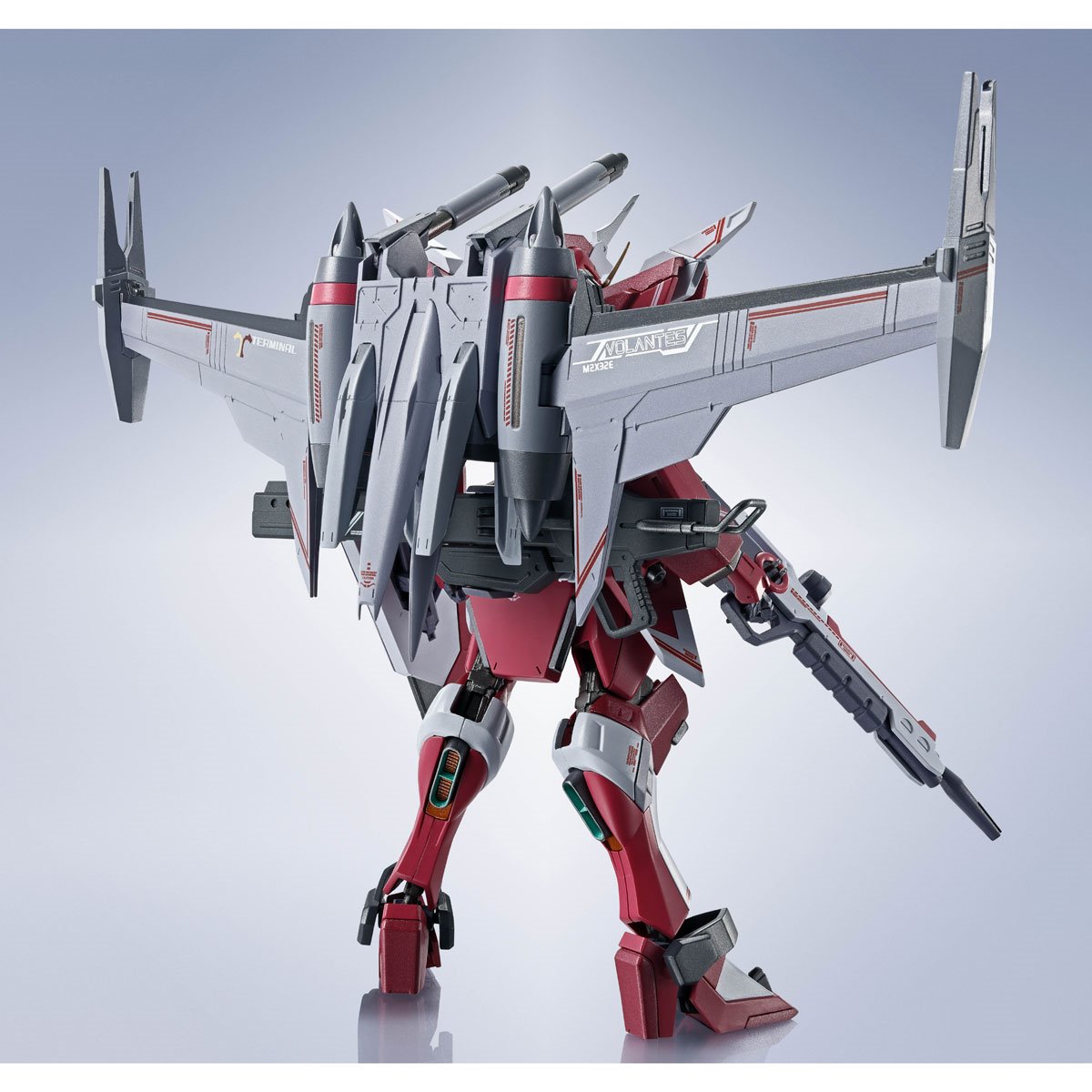 Er ist mit einer Reihe von Beam-Effekt-Teilen ausgestattet, die ikonische Waffen wie das „MA-F2002 Spitze Schwert Beam Horn“ auf dem Kopf und das „MMI-S1M7 Torniturus Beam Heavy Slashing Leg“ auf den Beinen imitieren. Der „M2X32E Forantes“-Rucksack kann ausgeklappt werden, um den Flugmodus nachzubilden, während der „MA-R259 Beam Riser“ an den Flügeln so angepasst werden kann, dass er sowohl den Waffenmodus als auch den Slasher-Modus darstellt. Mitgeliefertes Zubehör: 4 Arten von austauschbaren Handgelenkteilen (links und rechts), Rucksack, 2 Strahlschwertgriffe, Griff für verbundene Strahlschwerter, 2 Strahlschwertklingen, Hochenergie-Strahlgewehr, Schienengewehr, Schild