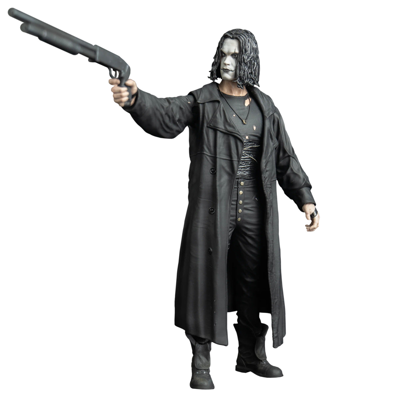 Enthält: Die Crow 8″ Scale Figure mit austauschbaren Händen, austauschbaren Armen, abnehmbarem Mantel und Schrotflintenzubehör.