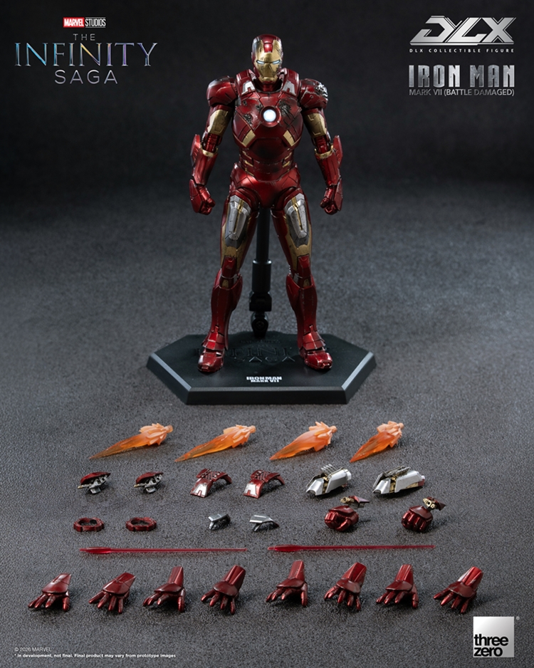 Drei (3) Paare von Effektteilen: Ein (1) Paar Schießeffekte, ein (1) Paar Flugeffekte (für die Füße) und ein (1) Paar für Handgelenklaserstrahl-Emitter