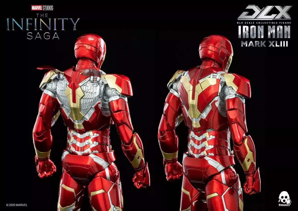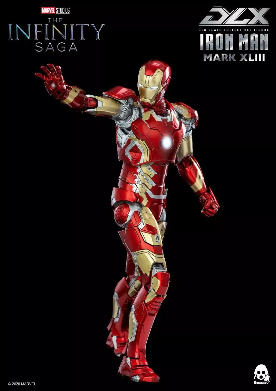 threezero hat die erste Avengers: Infinity Saga-Serie in Zusammenarbeit mit Marvel Studios-DLX 1/12 Iron Man Mark 43 grandios auf den Markt gebracht. Der bewegliche Korpus des DLX 1/12 Iron Man Mark 43 ist ca. 16,5 cm hoch, hat 48 bewegliche Gelenke und enthält einen Aluminiumrahmen.