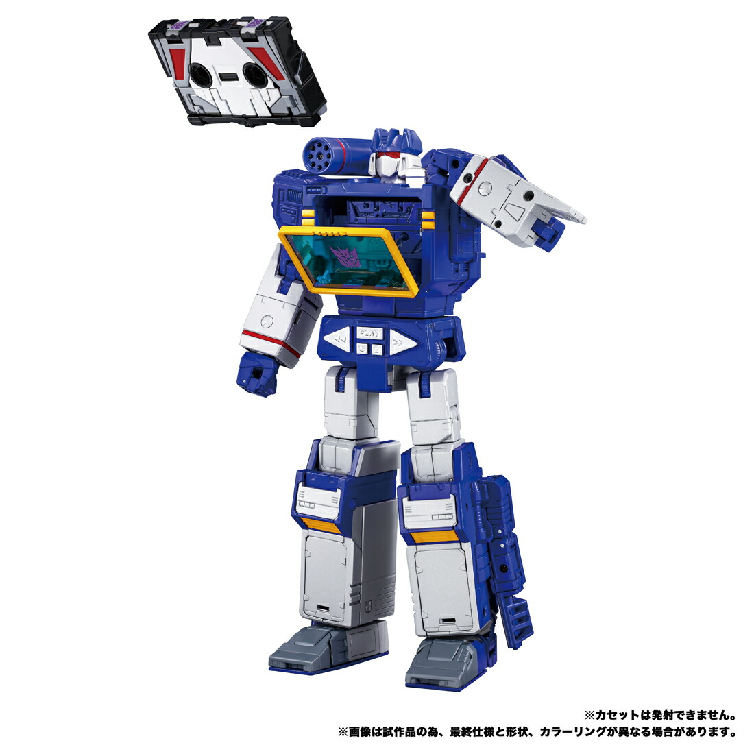 Transformers Masterpiece Soundwave wird in cartoon-getreuen Farben neu aufgelegt. Soundwave ist im Robotermodus ca. 9,5 Zoll groß und verwandelt sich in einen nicht funktionierenden Mikrokassettenspieler. Condor verwandelt sich vom Bandmodus in den Roboter und wieder zurück.