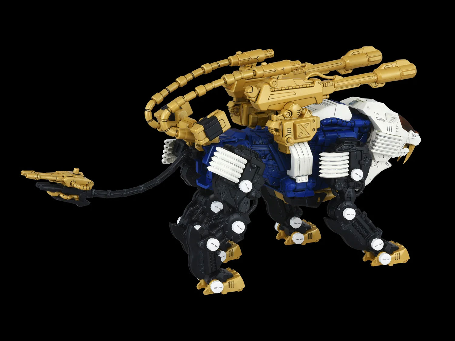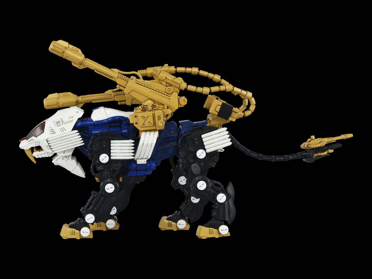 Dank eines speziell entwickelten Gelenkmechanismus ist der gesamte Körper beweglich, sodass er verschiedene Aktionspositionen einnehmen kann, die einzigartig für Löwen-Zoids sind. Die neu modellierte Strahlenkanone kann am Verbindungspunkt mit dem Energietank erhöht und gedreht werden. Die Kabel bestehen aus Kunststoff, und die vier Teile sind durch Kugelgelenke verbunden, was eine sanfte, flexible Bewegung ermöglicht. Enthält eine Pilotenfigur (regulärer Soldat). Die Figur kann im Cockpit sitzen.